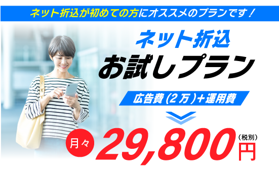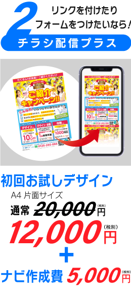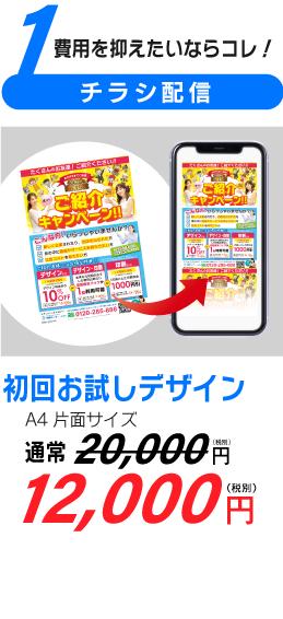 ※初回お試しデザインはA4片面サイズとなります。 ※ネット折込+運用費用は別途かかります。