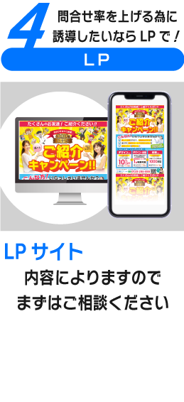 ホームページがない場合、ホームページのご用意をお願いしております。お持ちでない方は弊社にてレンタルホームページをご依頼していただくことも可能です。もしくは、チラシを作られた方はチラシをweb広告としてデジタルチラシに変換することも可能です。