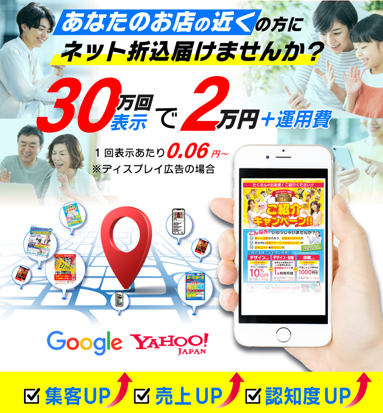 指定した地域の閲覧しているWEBサイトや、アプリ、SNS等にバナー広告が表示できます。